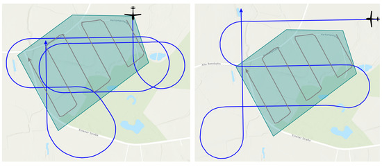 In our approach, the spatio-temporal positioning of the sensor footprint on the ground is separated from the computation of the optimized flight trajectory and performed sequentially. For this, the path of the sensor footprint on the ground is determined using coverage path planning, and then the UAV’s flight trajectory is optimized with respect to this footprint path. The separation is considered necessary to reduce the high complexity that a fully combined planning and optimization of the sensor control and the flight trajectory would entail.