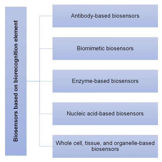 Figure 4. Classification of biosensors based on biorecognition elements.