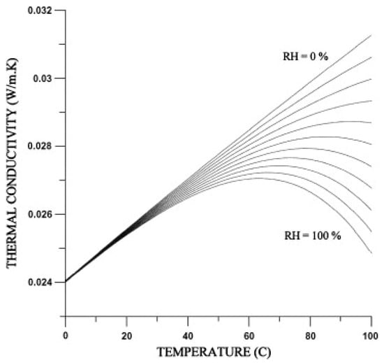 - Tsilingiris, P.T. Thermophysical and transport properties of humid air at temperature range between 0 and 100°C. Energy Convers. Manag. 2008, 49, 1098–1110. [Google Scholar] [CrossRef]