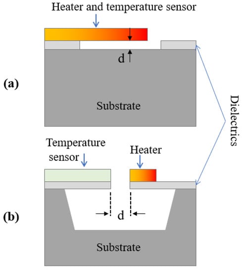 - Ma, H.; Qin, S.; Wang, L.; Wang, G.; Zhao, X.; Ding, E. The study on methane sensing with high-temperature low-power CMOS compatible silicon microheater. Sens. Actuators B Chem. 2017, 244, 17–23. [Google Scholar] [CrossRef]