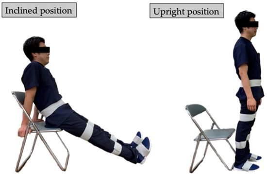 Subject positions for sensor calibration. Sensor calibration was computed from measurements in the inclined and upright positions.