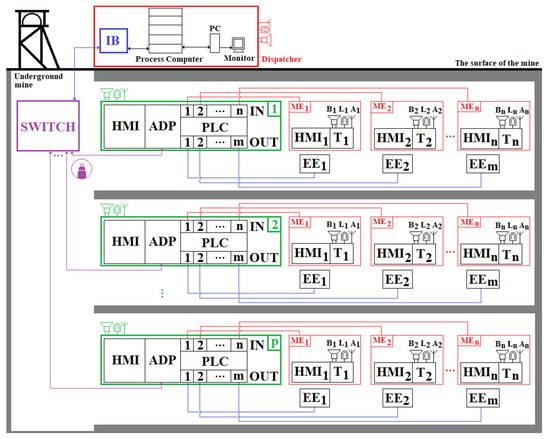 In order to monitor the atmospheric parameters within underground mining operations, the PLCs can be connected in various network topologies (bus, ring, mesh, star, etc.). The choice of network topology is made according to the technical–economic benefits/drawbacks of each topology type.