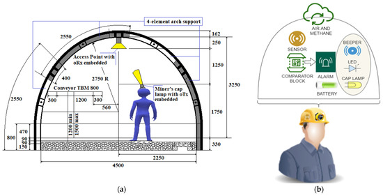 - Farahneh, H.; Hussain, F.; Fernando, X. A new alarming system for an underground mining environment using visible light communications. In Proceedings of the 2017 IEEE Canada International Humanitarian Technology Conference (IHTC), Toronto, ON, Canada, 21–22 July 2017; pp. 213–217. [Google Scholar] [CrossRef]
