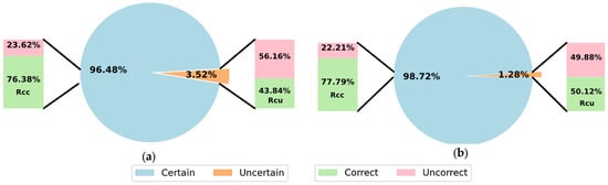 was proposed to calculate the accuracy of rejected predictions, as shown in Equation (10). This criterion was incorporated with the objective of evaluating how close the accuracy on rejected predictions was with respect to the hypothetical accuracy that would be obtained if the classifier provided random predictions.