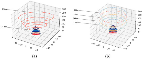 The fight path of the drone. (a) University-1652. (b) SUES-200.