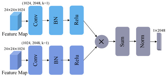 An adequate representation fusion method is needed because of the importance of the feature’s robustness and discrimination. Inspired by research findings from Personal ReID [47], the bilinear pooling is applied to fuse the feature maps. MBF’s backbone has two stages, ResNetV2 focuses on the target’s local feature, and ViT focuses on the global feature. We designed a hierarchical feature fusion block based on HBP to enhance the final feature’s capability.