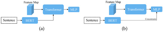 To align the feature’s dimension with the image’s patch embedding, we utilize a pre-trained NLP model BERT [46] to transform the sentence to the word embedding. Furthermore, the timing of fusing the word embedding to the backbone should be considered. As shown in Figure 3, we adopt progressive fusion to link the text model data. The purpose of this module is to help the network learn external information in an implicit way. Fusion experiments will be detailed in Section 4.3.