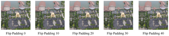 Flip padding. We pad 0, 10, 20, 30, and 40 pixels on the left of query images, respectively.