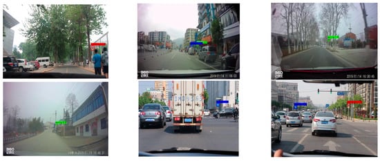 In order to evaluate the efficacy of the proposed algorithm, a relevant test was conducted in a natural scene using an in-car camera by selecting a video containing traffic signs for frame extraction and processing, processing the video into multiple images, and evaluating the processed images with the algorithm. Red identification boxes indicate prohibitive traffic signs, blue identification boxes represent mandatory traffic signs, and green identification boxes represent warning traffic signs in Figure 12 and Figure 13.