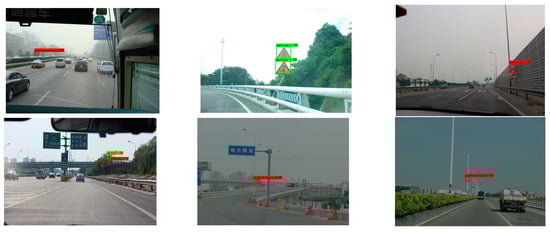 In the current research on traffic sign detection and recognition, the algorithm performance was primarily evaluated using well-known public transportation sign datasets, such as the GTSDB (German Traffic Sign Detection Benchmark), the BTSD (Belgian Traffic Sign Dataset), and the STSD (Swedish Traffic Sign Dataset) []. The aforementioned datasets are limited to European traffic signs, the samples are gathered primarily under optimal lighting settings, and there are substantial discrepancies between Chinese and European traffic signs []. We used the CCTSDB2021 dataset, which was composed of 423 films from traffic recorders at varied times, locations, and weather conditions, to accomplish real-time detection of Chinese traffic signs in difficult circumstances. The dataset included street traffic scenes, high-speed traffic scenes, rain traffic scenes, evening traffic scenes, and backlight traffic scenes. The diversity and coverage of the dataset were well-ensured, which was more compatible with the task of Chinese traffic sign detection under complex scenarios.