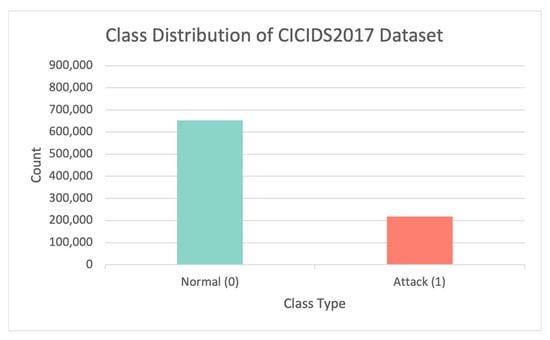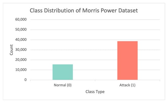The real network traffic data from the SCADA system contains a substantial amount of regular traffic and a minor amount of irregular traffic, which is a classic imbalanced data categorization challenge. Other datasets are created by simulations in which attack scenarios are manually injected into the system, resulting in more attacks than usual, such as in the case of the BoT–IoT dataset [7]. Although the prediction accuracy of some majority classes improves when the total error is minimized in this scenario, the prediction accuracy of minority classes is typically poorer.