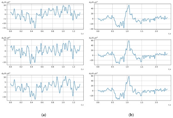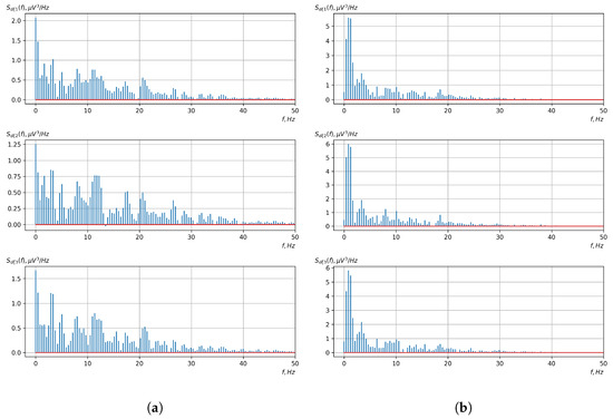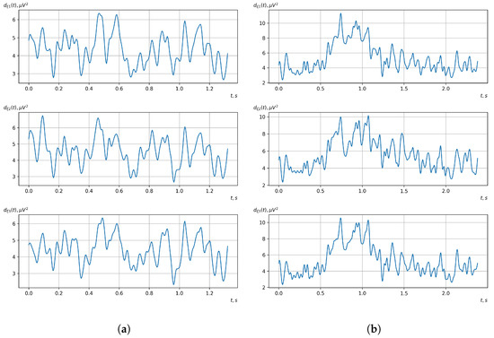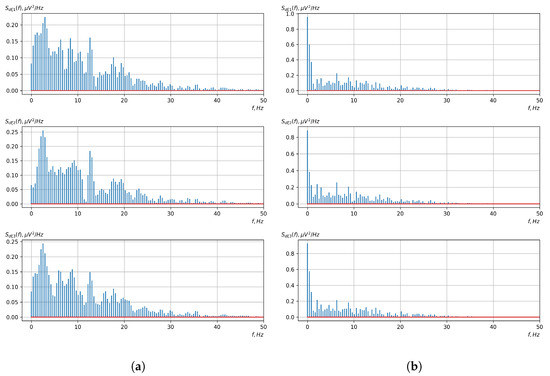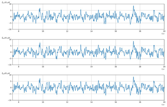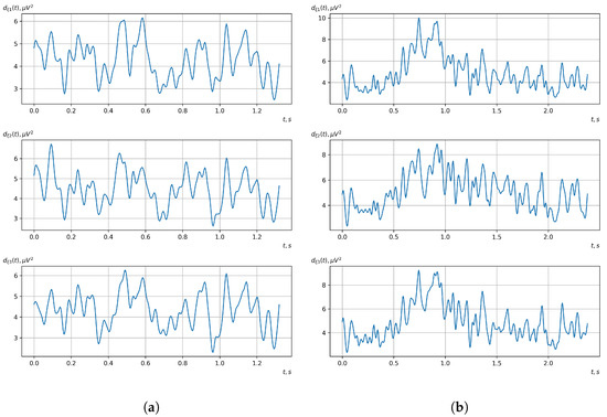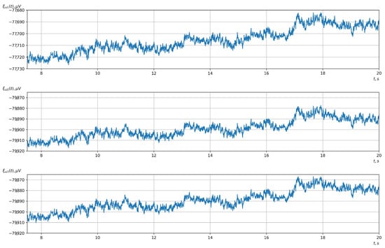 Among the stochastic mathematical models of EEG signals, a stationary random process is often used in the general sense (informative characteristics, autocorrelation function, and spectral function of the power density (power spectrum) of the EEG signal). For example, as an informative characteristic of EEG signals, researchers [32] used the one-dimensional power spectrum, which corresponds to the model of EEG signals in the form of a stationary random process.