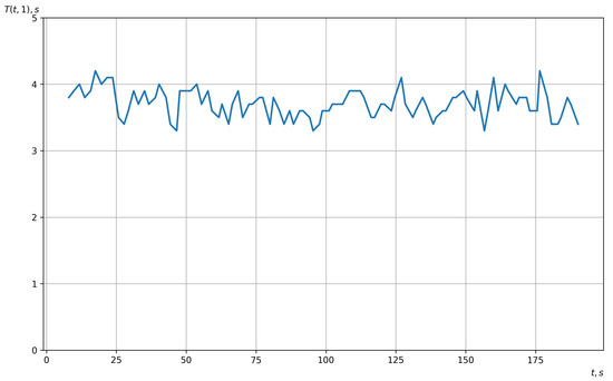 Because the duration of an operator’s performance of the corresponding task in each experiment is different, the corresponding durations of the cycles of vector of cyclic rhythmically connected random processes are also different. This indicates the correctness of the assumption that the rhythm function of the vector of cyclic rhythmically connected random processes does not satisfy the condition . Thus, taking into account the above considerations, it is reasonable to assume that an adequate mathematical model of a vector EEG is a vector of cyclic rhythmically connected random processes with an irregular rhythm.