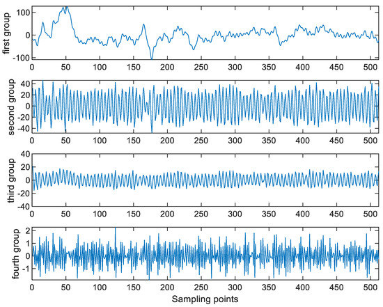 Suppose that a signal is composed of a finite number of components. EMD is an algorithm for finding these components. More precisely, EMD is used to represent a signal as the sum of various components. These components are called intrinsic mode functions (IMFs). If the IMFs are different from the actual components, then mode mixing occurs. Here, the EMD does not require any pre-defined kernel for performing the decomposition. As the IMFs are only dependent on the signal itself, EMD is an adaptive signal decomposition method. On the other hand, it is worth noting that the decomposition is based on the time-scale characteristics of the given signal. As a signal with more extrema contains more high-frequency components than a signal with less extrema, EMD exploits the time–frequency characteristics of the signal. These excellent properties of EMD facilitate many science and engineering applications [21,22,23].