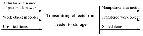 The functional structure of a product must clearly show the goal of product development and represents a meaningful and compatible combination of individual functions that form the overall function of the system. The relationship between the individual functions must be carefully defined in terms of the conversion of materials, energy and information. The functional structure of the system for sorting with specified input and output of energy, materials and information is shown in Figure 3.