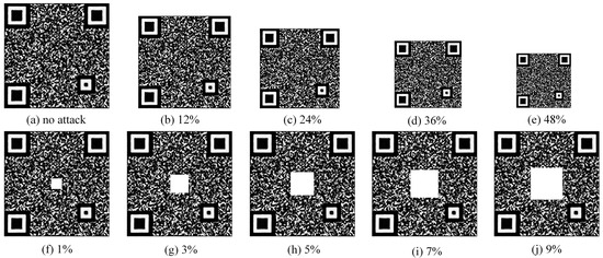 QR codes have some error correction capability and up to 30% of the area covered can still be correctly decoded. In this paper, patterns with anti-counterfeiting capability are incorporated into QR codes to ensure some degree of error correction capability. Figure 23a shows the decoding for codes with different reduced proportions. It can be seen that the smaller the proportion, the lower the decoding accuracy. The anti-counterfeiting codes in this paper are resistant to up to 48%. As can be seen in Figure 23b, codes with a maximum cut area of up to 5% can still be guaranteed to decode 100%. In the actual decoding process, the image sizes are also different due to the differences in mobile devices.