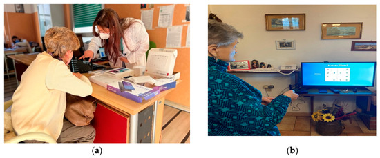 - Sentab technology (https://www.sentab.com/, accessed on 16 November 2022) is an end-to-end solution developed by the company of the same name for providing entertainment, social interaction, and monitoring for older adults and their families. It connects seniors with their caregivers and relatives seamlessly over TV and tablet interfaces for seniors and web and mobile interfaces for caregivers, providing, amongst others, video calling and media-sharing features. Sentab was used on the TV in the Tuscany pilot and on the tablet version in the Apulia pilot, according to the guidelines and feedback received during the needs analysis [31]. SENTAB also included the Vanilla web-based application, which was used by the caregivers to talk to and socialize with end-users.