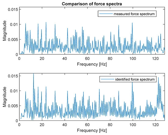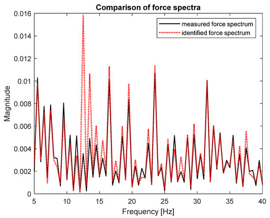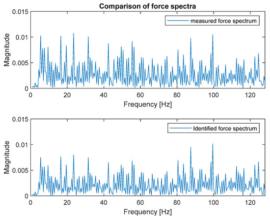 The identified force spectrum, together with the reference spectrum obtained from the force sensor, are presented in Figure 7.