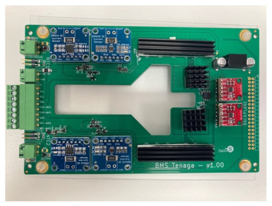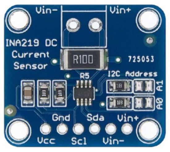 For communication between the electronic board and these sensors, the I2C (inter-integrated circuit) bus is used. Each sensor has an I2C address that identifies it on a shared bus, since they are compatible with this communication protocol. It is a communication bus found on most Arduino boards [36], which allows communication between different devices that support this technology. This device has two pins related to the I2C address. In an I2C bus, each device must have a different address to carry out communication between devices in the same shared I2C. Pins A0 and A1 allow up to two bits of these addresses to be modified. Therefore, the maximum number of INA219 devices to be used on the same I2C bus is four. Considering that the system prototype must be scalable up to 28 cells, the problem of conflict among different addresses is solved in order to be able to share 28 INA219 devices in the same I2C through the integration of a multiplexer.