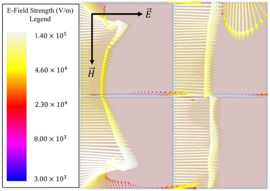 In the case of the bare metasurface, in Equation (4), , and it was found that and . Thus, solving Equation (4), it was found that C = 1.64 fF.