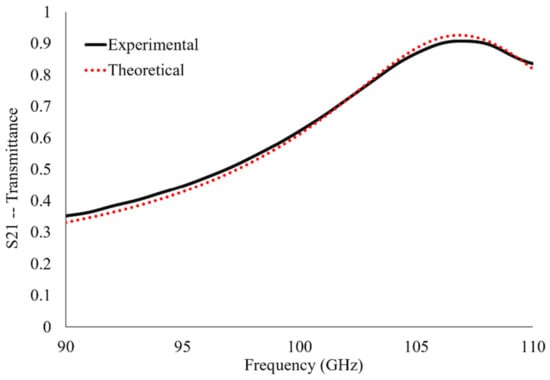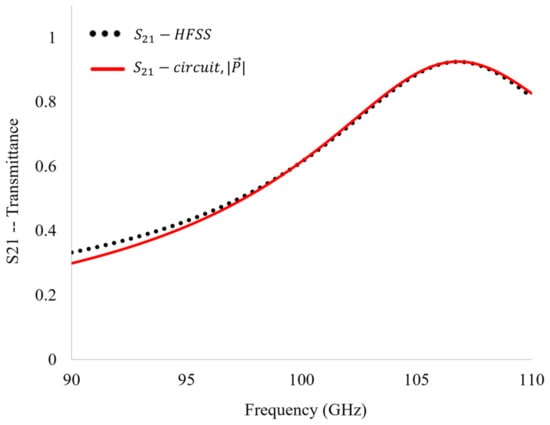 Figure 18). It was found that there was a 0.95% difference between the transmittance spectra produced in QUCS and those obtained through metasurface simulation in HFSS. This agreement confirms that our metasurface was justly treated as a modified capacitive patch array.