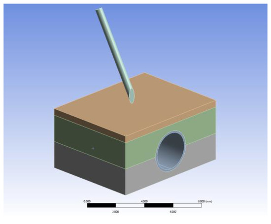 Firstly, the dorsal hand vein puncture model was established in SolidWorks in layers according to the actual scale and then imported into ANSYS. As shown in Figure 24, this mainly includes five parts: the puncture needle, the skin layer, the subcutaneous fat layer, the vein vessels, and the muscle layer. The material properties of each part are configured by reviewing relevant information to meet the experimental simulation requirements [37,38] including material density, material model and parameters, and failure properties. The mechanical property parameters of each layer organization are shown in Table 5.