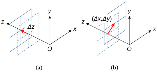 When measuring displacement using images, displacement in the z-direction is in principle detected from the change in magnification of the object projected onto the image sensor. For an image point formed at a distance x from the optical axis on the image sensor, suppose that x changes by when the distance z changes slightly by . In this case, holds where f is the focal length, from which is obtained [11].