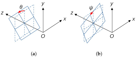 (a) Inclination of the object surface due to rotation around x-axis. The direction of the rotation axis is also one of the degrees of freedom. (b) In-plane rotation.