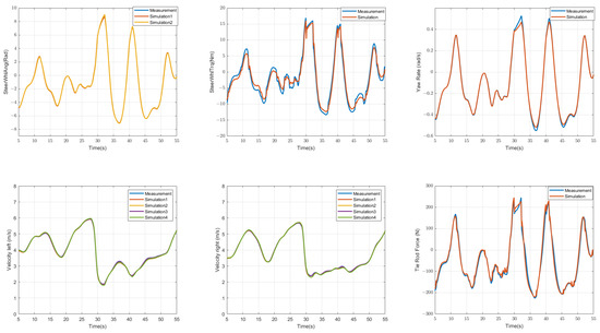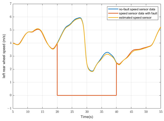 As introduced in Section 3.5.1, we could now replace the average central axis speed in (30)–(33) with the Kalman filter longitudinal speed. In addition, we could also obtain the four-wheel speed: , , , .