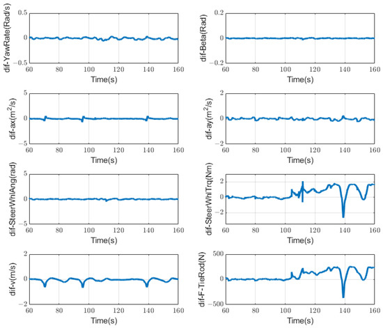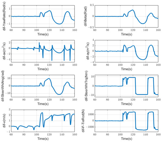 All the results shown in this article are simulated results, i.e., the car model built in CarMaker based on the validated parameters of the real car is regarded as a virtual car, and its driving states in the virtual environment are regarded as the sensor measurement values. On the one hand, this is due to the lack of current real vehicle data; on the other hand, due to the limitations of experiments, it is impossible to inject faults into the motors of real vehicles. Therefore, the motor faults of real vehicles are actually adjusted to 0 artificially, which is different from that in the simulation. In order not to confuse readers further, there is no display of real vehicle data here. However, it will be written in the author’s next article, which is aimed at the comparison and evaluation of different diagnostic methods, which will involve the verification of real vehicle data.