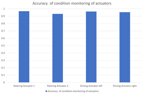 The accuracy rates for the sensor monitoring are shown in Figure 20. From the accuracy rate in the figure, we can see that the accuracy rate of the abnormal condition monitoring of the sensors is outstanding and can reach more than 0.95.