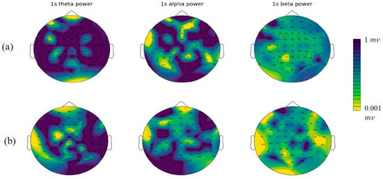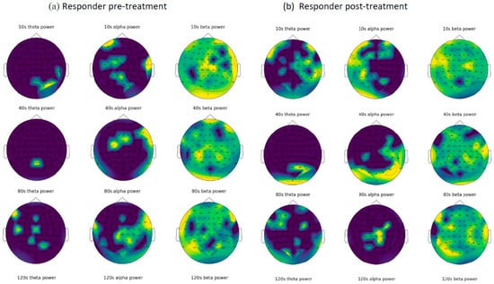The visualization EEG frequency domain features from a randomly selected responsive patient before (a) and after (b) treatment.