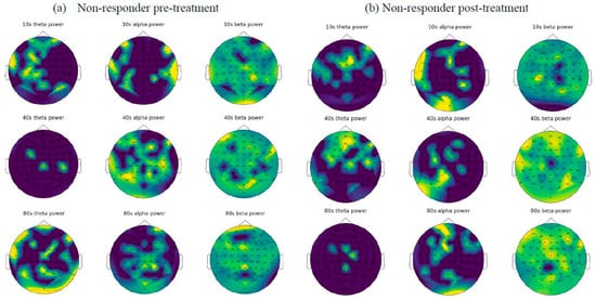 Visualization of the EEG frequency domain features from a randomly selected non-responsive patient before (a) and after (b) treatment.