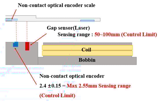 Sensing range of the non-contact encoders according to the X–Y axis movement.