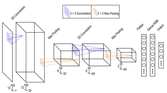 The architecture was motivated, in part, by the work done by Mundt et al., which demonstrated success for computing joint kinematics based on inertial measurement units [23]. Mundt et al. opted to use an existing CNN model [23,28]. To make use of this model, it is necessary to format the data as a 224 × 224 × 3 array, which mimics the format of an RGB image. The proposed strategies for this conversion involve upscaling the input data using a cubic spline interpolation [21,23] Our approach, however, uses a far smaller network and does not rely on interpolation to upscale the input data. Instead, the model is trained on the 12 × 100 × 1 array. This simplifies the preprocessing steps, and results in a much smaller input, which is more practical for use in systems with limited memory, such as embedded systems.
