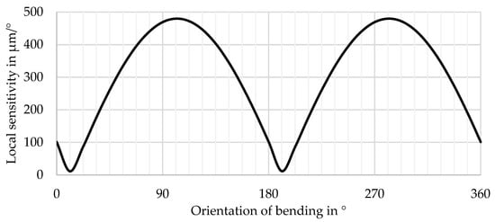 Local sensitivity of the sensor system for small bending angles in dependence of the bending orientation .