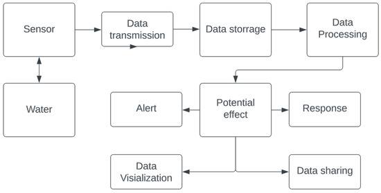 As an example of high-level flow chart of how an IoT system for water monitoring might work, the sequence of information flow may look like the following (Figure 1):