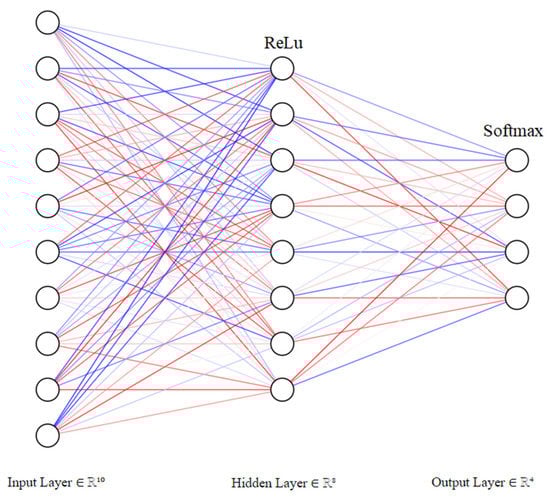 Several possible values were tested and compared when selecting the input and output layers, as well as the activation functions. The layers of the developed neural network are as follows (Figure 5):
