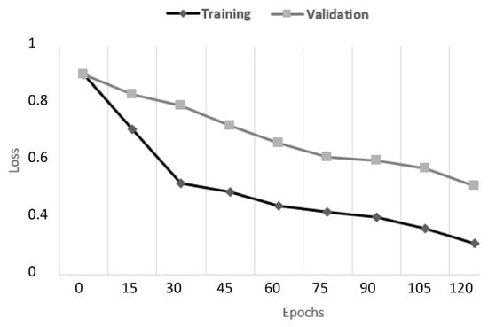 Figure 9 depicts the train and validation loss values over all epochs. Furthermore, the model had 89% precision, 91% recall, and an F1-score of 0.899.