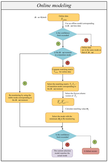 It should be noted that since the current sampling time selected for online operation is reliable and accurate conclusions cannot be obtained if the online modal recognition process depends only on the results of one sample point at time . Therefore, online mode identification is performed by combining the recognition results of consecutive online sampling data, that is, from the sample to the sample. Algorithm 2 shows the online monitoring phase algorithm. Based on the above premises, the detailed steps of the online monitoring method proposed in this paper are as follows (the proposed online mode identification method is used in Step 4).