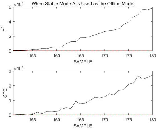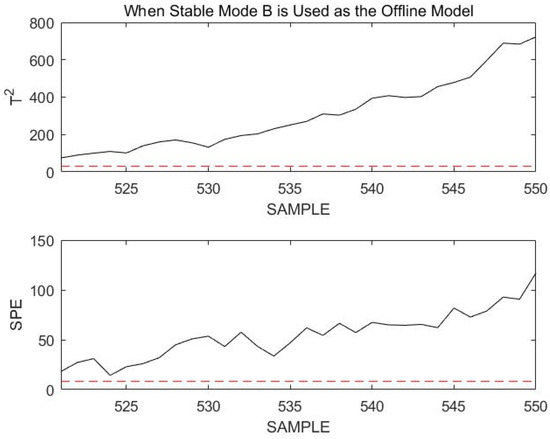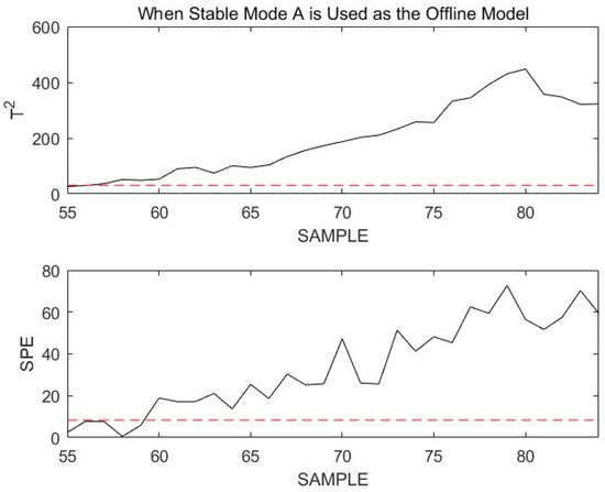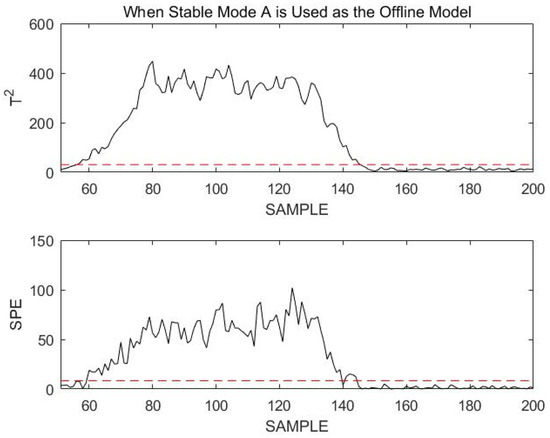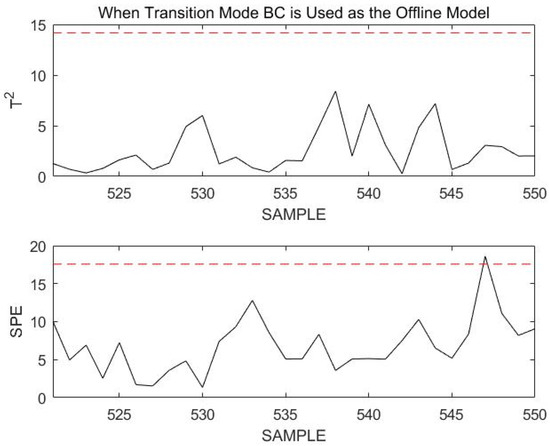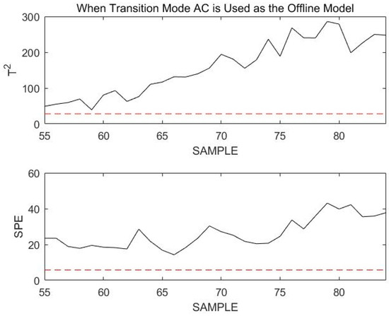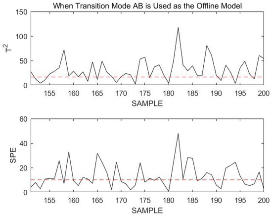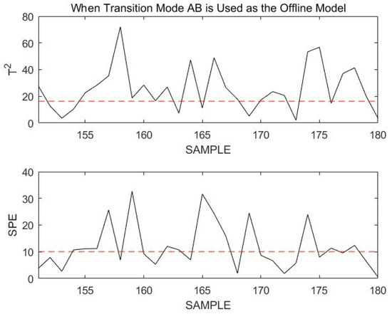 It was clearly seen that the normal transition mode process was incorrectly identified as a fault during the overall monitoring process. This is not the case when the stable modes and transition modes are modeled and monitored separately. The necessity of modeling stable modes and transition modes separately can be demonstrated.