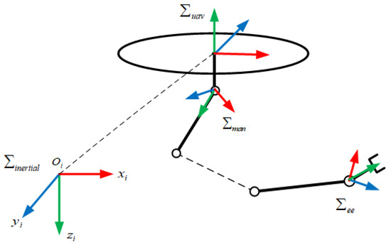 The UAM system consists of a multi-rotor UAV and an n-link manipulator, as illustrated in Figure 1.