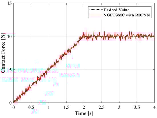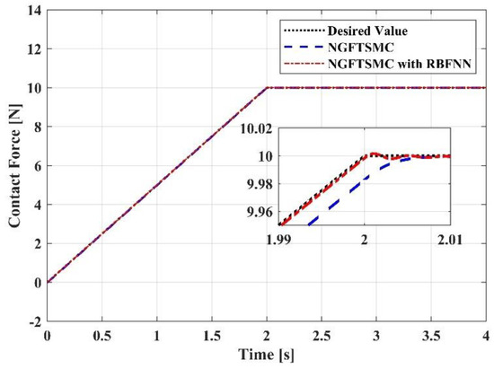 In this section, numerical simulations are performed to verify whether the proposed controller can be successfully extended to the contact force control of the UAM. Since many researchers have already confirmed the advantages of the NGFTSMC [33,34], this paper compares the proposed controller with the NGFTSMC in simulations.