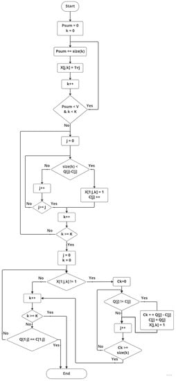 Our algorithm consists of a set of MEC servers S with caching space Q, assuming that servers receive a set of tasks K. The task scoring algorithm considers the tasks’ attributes such as size and popularity in determining whether the task will be cached or not. Each MEC server is surrounded by a set of randomly distributed MDs. The MEC servers are sorted in ascending order of their distance from the center of the cluster which means that the smaller the number, the shorter the range. For redundancy, we specify a capacity percentage from the caching total capacity Q; this specified space has a predetermined threshold V. Once a task is received, the server checks if the task should be cached or not according to the described caching criteria that is illustrated in the flow chart in Figure 4.