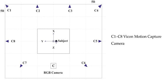 Camera positions relative to subject and motion capture system origin.