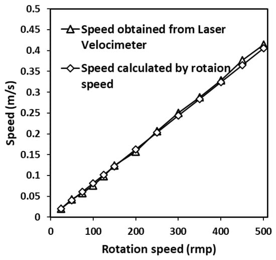 The results show that the speed measured by the laser velocimeter increased with the increasing rotation speed. It is important to note that the observed trend is linear. It means that the increase in the speed was due to the increase in the rotation speed. The speed measured by the laser velocimeter could reflect changes in rotation speed without distortion. The result is in agreement with the dual-beam LDV. Both of these speed measurement methods are based on the generated fringes, and how the fringes are generated is different. Therefore, the method proposed can achieve speed measurement and is expected to have more advantages in certain aspects.