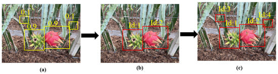 (3) Tracking dragon fruit at different growth stages: Adding multi-classification information on the basis of multi-object tracking technology and integrating the results of dragon fruit detection to achieve real-time tracking of dragon fruit across various growth stages.