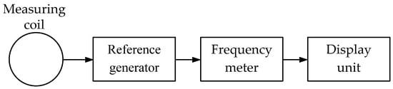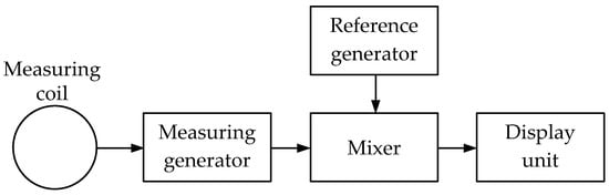 Figure 4 shows a simplified flowchart of a metal detector operating on the BFO principle. Two same-frequency generators (measuring and reference) are used while the frequency of the reference one is unchanged. The measuring generator’s working circuit coil is simultaneously detecting (emitting) and measuring one. When a metal object occurs in the coverage area of the detecting coil electromagnetic field, the measuring generator frequency changes. The changed frequency signal is fed to the mixer, where it is mixed with the reference frequency signal. As a result, a beat frequency signal is generated at the mixer output, which is fed to the display unit.