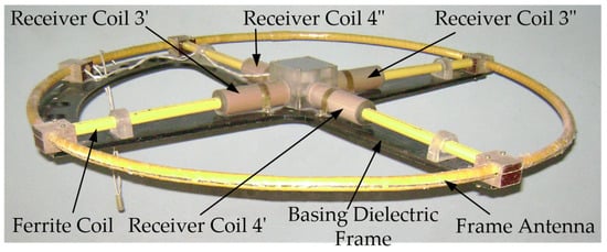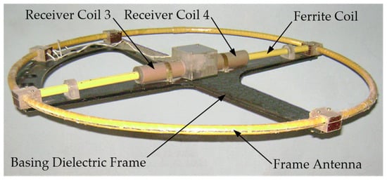 Radiating LA 2 has a mutually orthogonal arrangement relative to the receiving coils of the goniometric ferrite antenna, which provides the required geometric compensation for the primary field, and the differential connection of each corresponding pair of sectional receiving coils implements mutual compensation for in-phase EMFs induced in them by external electromagnetic noise.