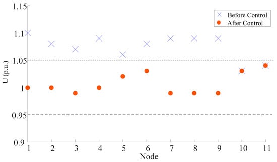 The comparison diagram before and after voltage optimization of each node is shown in Figure 8.